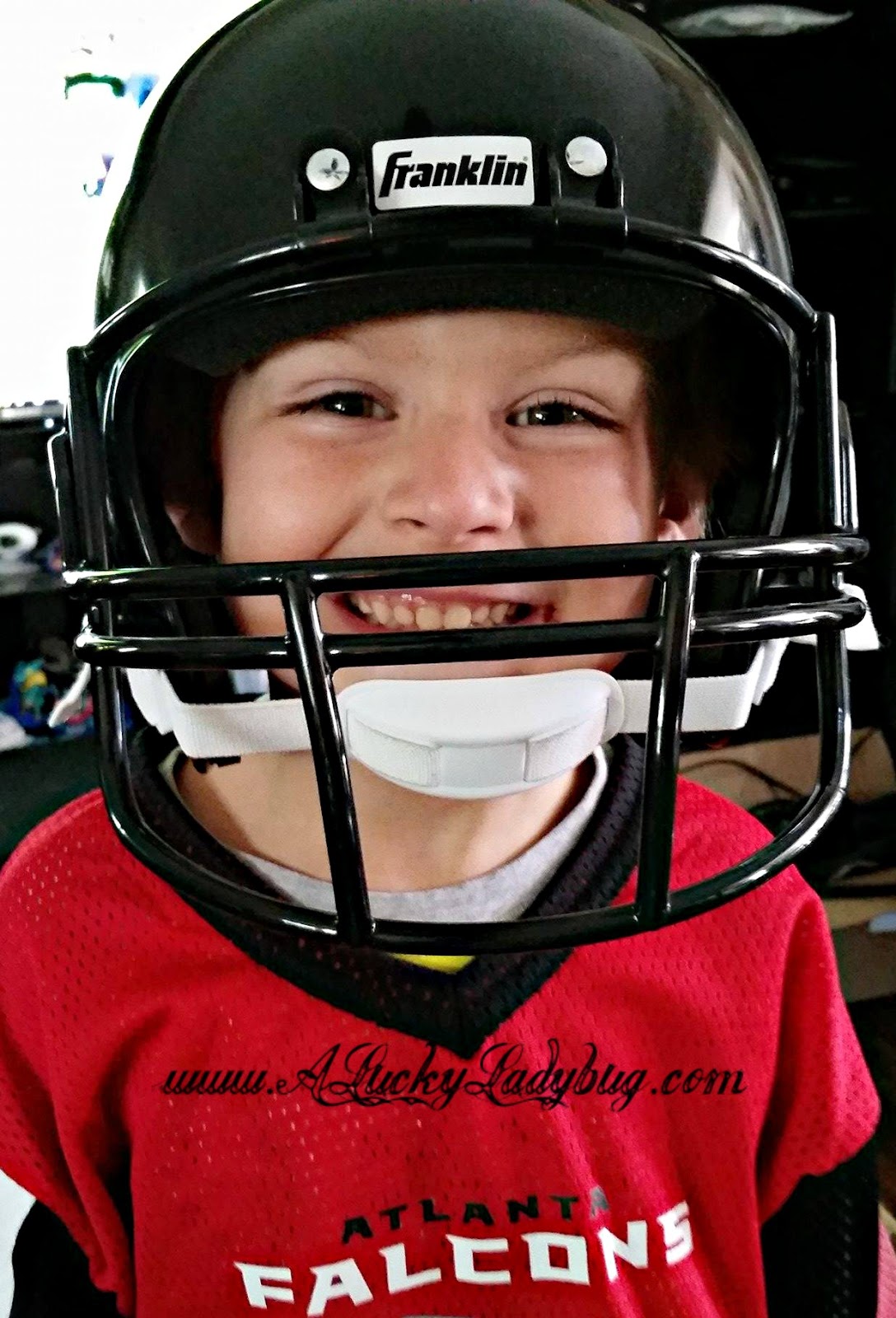 This year, Franklin Sports has the perfect costumes for the little football fans. The minute I was asked to review their new NFL® deluxe uniform set, the boys knew they wanted to be little Atlanta Falcons and were quite psyched! Being that Kevin is from Atlanta, the Falcons are his favorite team. We had originally decided on this costume for Declan but quickly after it arrived, Dane decided he wanted to have one as well so needless to say a 2nd one is on order for this house!